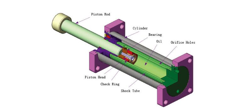 Custom-orificed design accommodates specific damping requirements. Computer generated output performance simulation is used to optimize the orifice configuration.  Available in standard bore dimensions of up to 200mm and strokes over 1524mm